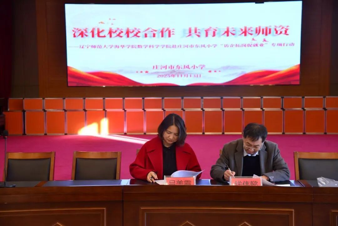 为深化校校合作内涵,搭建人才培养与就业对接桥梁,2025年11月13日,辽宁师范大学海华学院数学科学学院院长钱伟懿、教学工作副院长孟海涛、学生工作副院长陈晨以及教师代表李昊轩赴庄河市东风小学开展“访企拓岗促就业”专项行动。双方围绕师资培养、实习基地建设、人才输送等核心议题深入交流,共绘协同育人新蓝图。